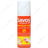 اسپری ساووی همچنین آثار سوختگی را از روی پوست از بین می برد. استفاده از این محصول در مقایسه با کرم ها، بسیار ساده، سریع و بهداشتی می باشد. زیرا در این روش اسپری، از فاصله 15 سانتیمتری روی پوست اسپری می شود و موضع سوخته با دست لمس نشده و عفونی نمی شود. این محصول حاوی دو ماده موثر بنزوکائین و کلرهگزیدین می باشد.