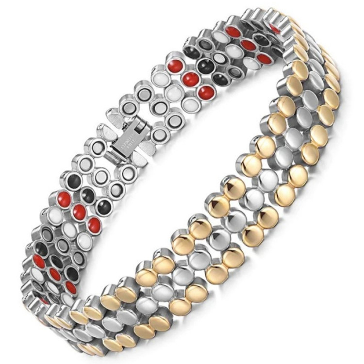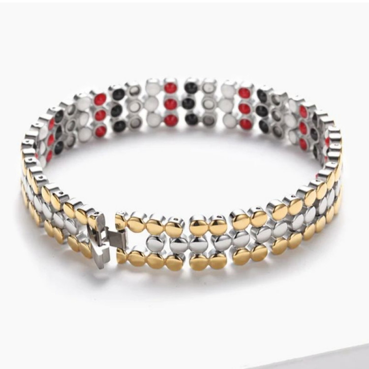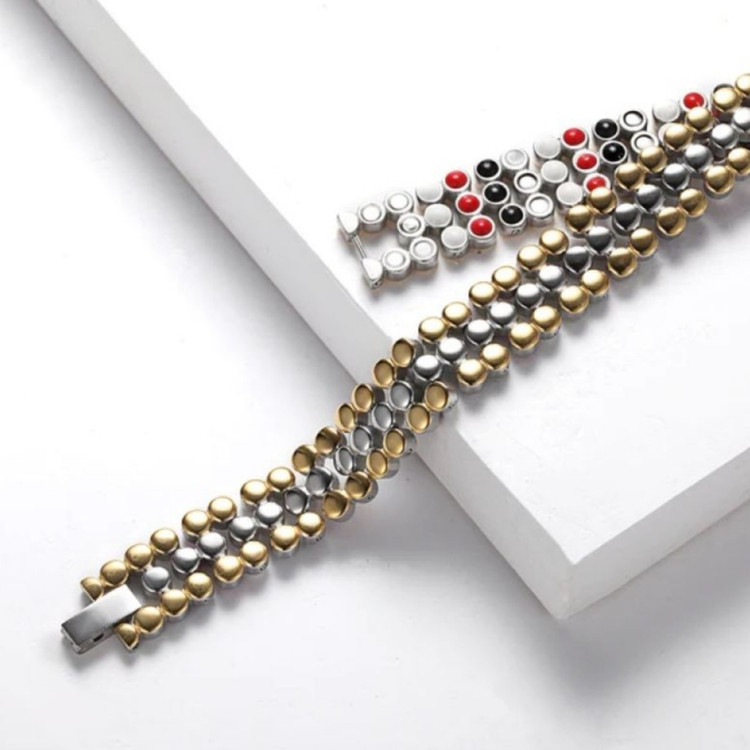 دستبند مغناطیسی تراپی چهار سنگ سه ردیف برای درمان بیماری و عارضه های مزمن و لاعلاج جسمی و ذهنی