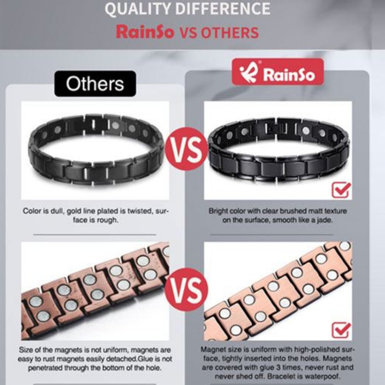 دستبند مغناطیسی تراپی چهار سنگ برند Rainso سه ردیف (های گاوس)